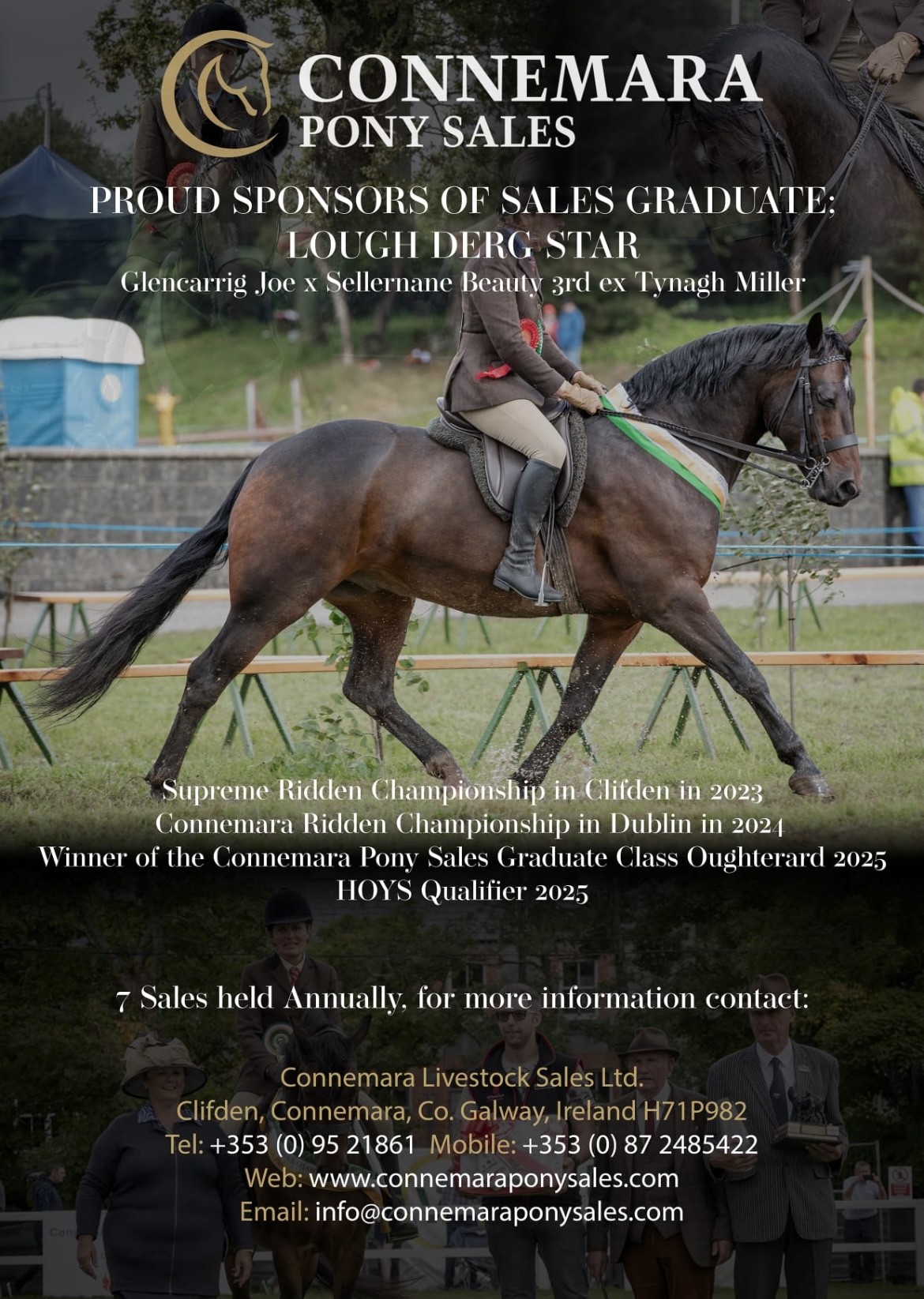Connemara Pony Sales are delighted to sponsor two of our former graduates, Lough Derg Star and Owen’s Shadow, as they compete at HOYS 2025.