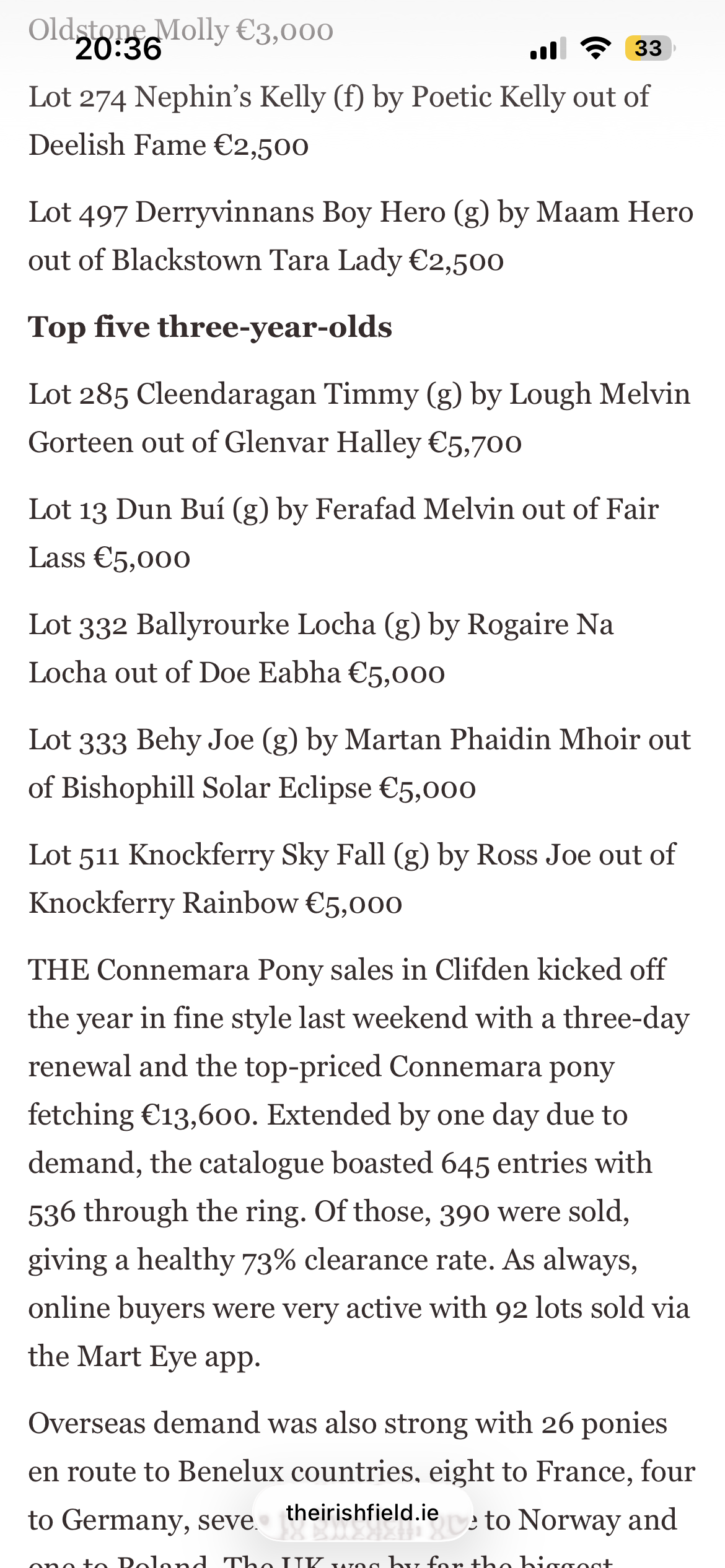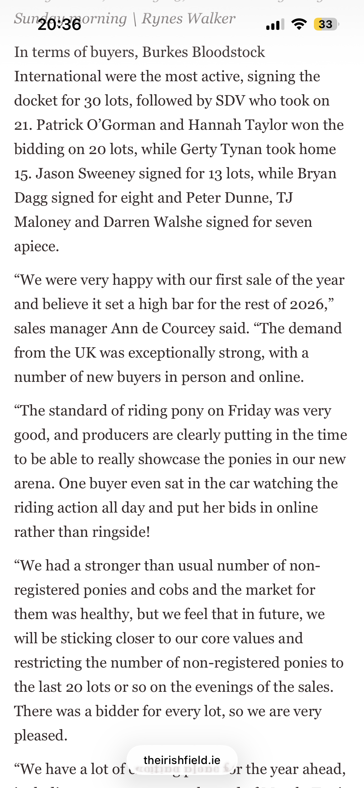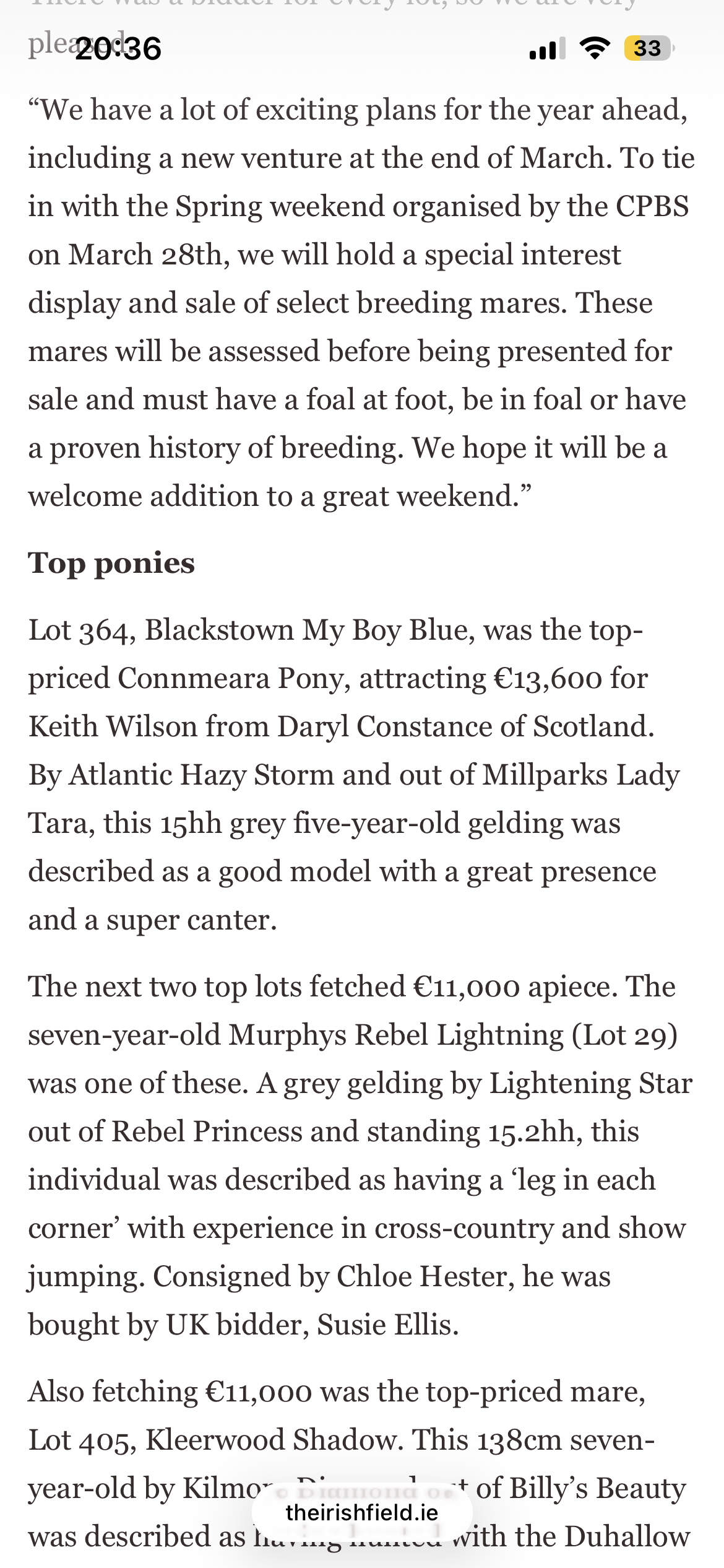 Here is a review of our three day February sale in the Irish Field this weekend, here is a link to the original article.