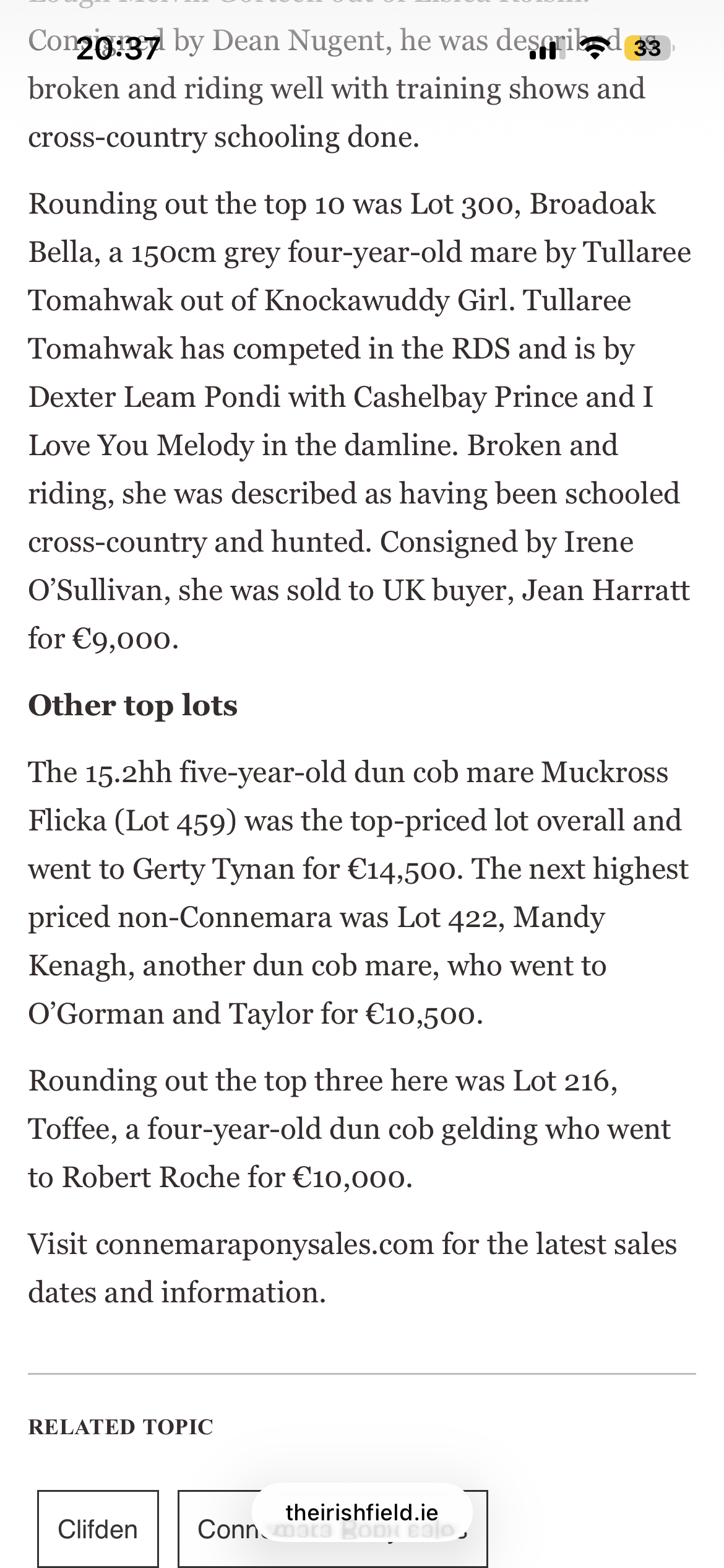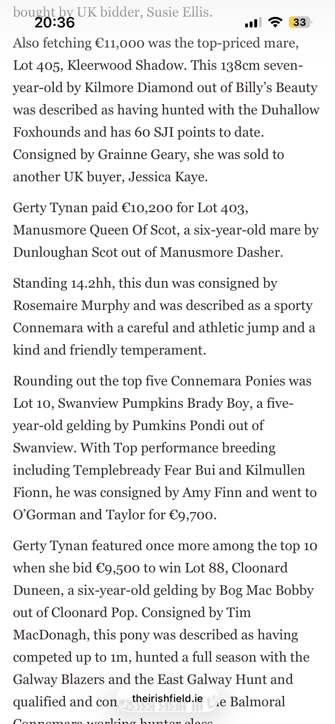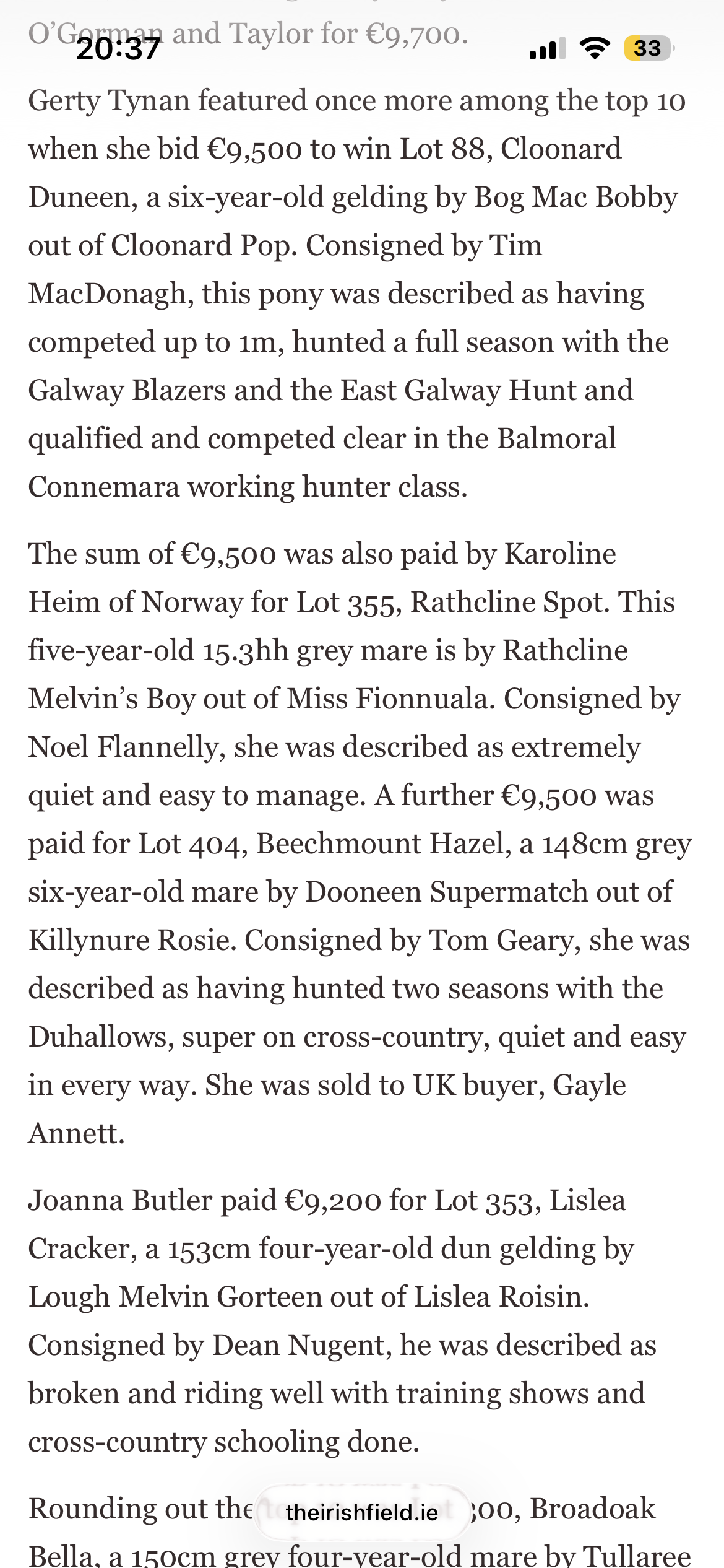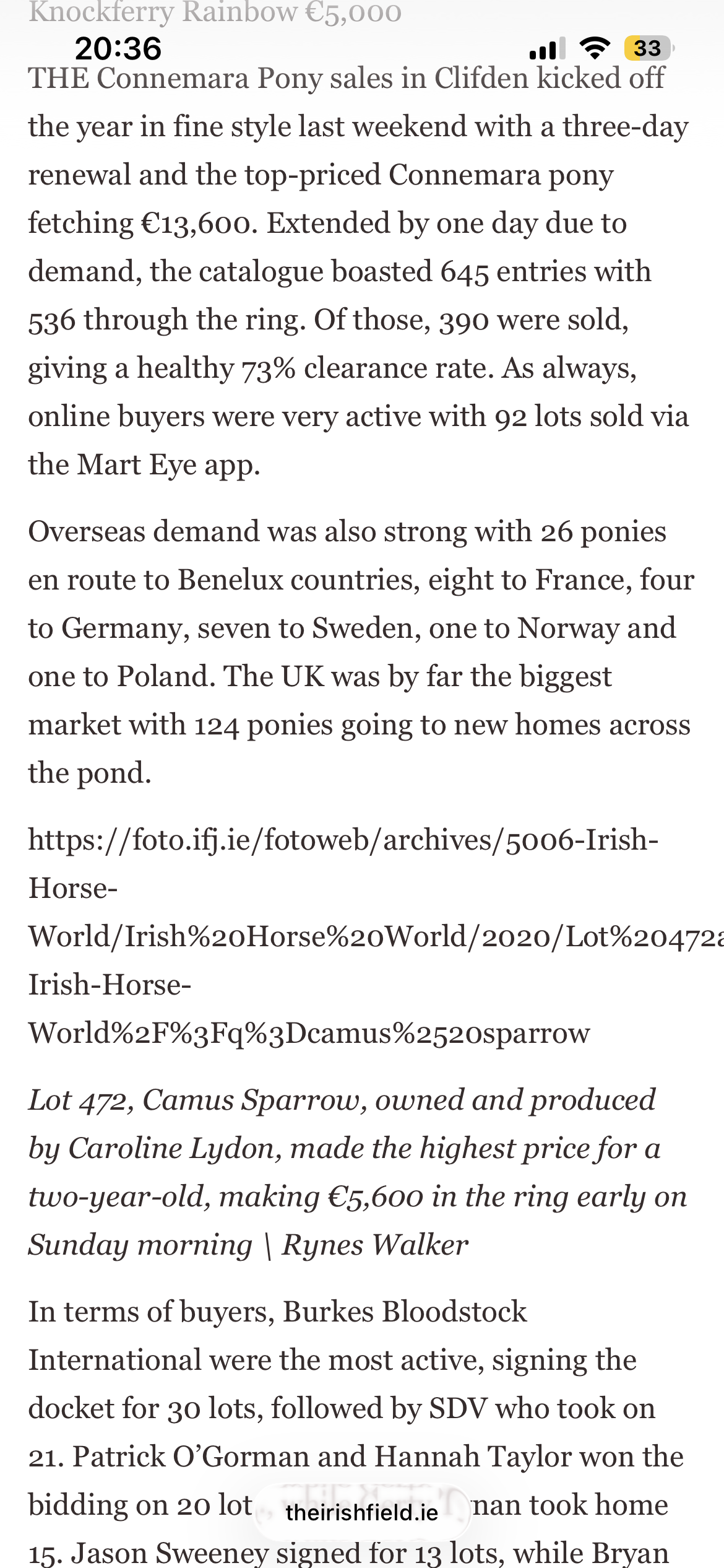 Here is a review of our three day February sale in the Irish Field this weekend, here is a link to the original article.