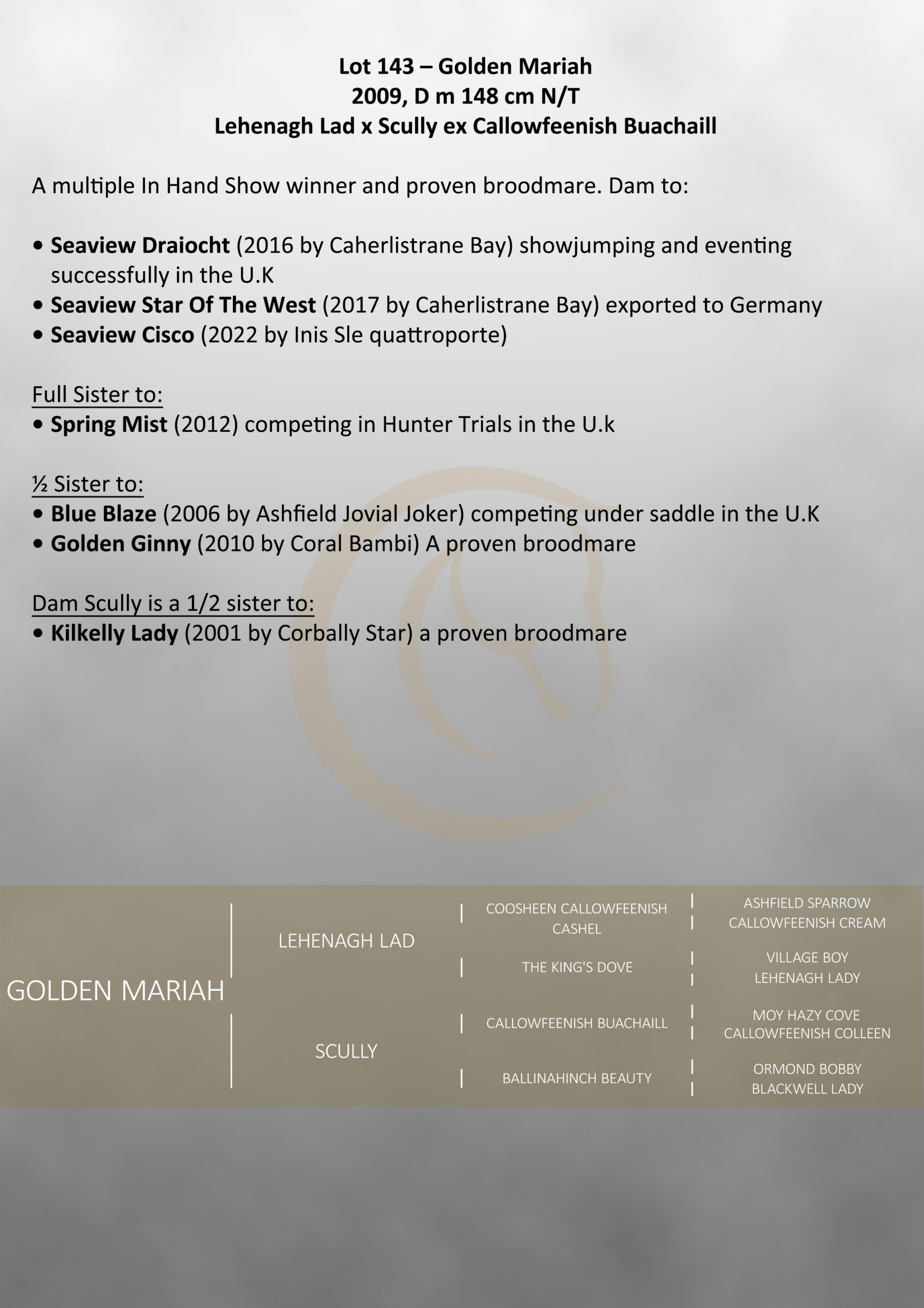 Lots to look out for: Lot 143 – Golden Mariah