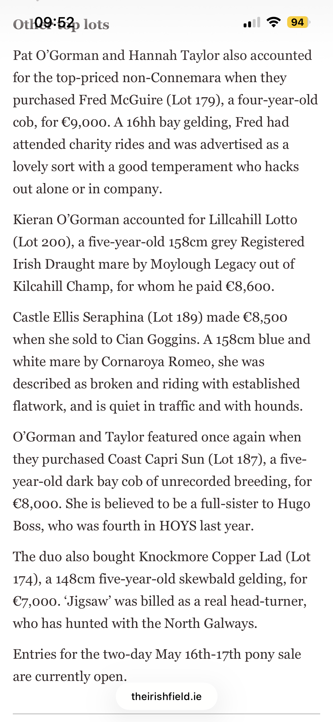 Here is the review of our April 12th sale, massive thanks to all of our customers for making the sale such a success.